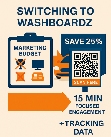 Unlike billboards, flyers, or screen ads, Washboardz gives your brand, giveaways, and promotions undivided attention to a captive audience.
