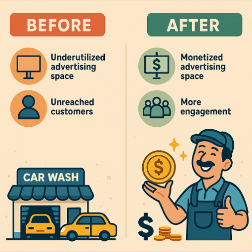 Car wash customers are a captive audience—no scrolling, skipping, or driving past. Conventional advertising has no interaction, no data, and no conversion tracking…..but with Washboardz…. We do!